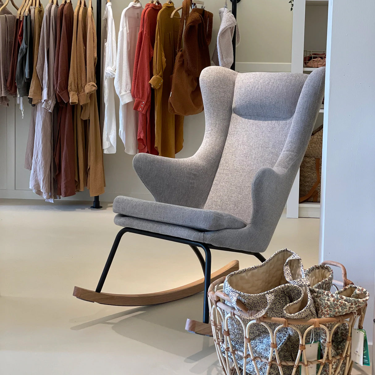 استمتعي بالراحة الفاخرة أثناء الرضاعة والاسترخاء مع هذا الكرسي الهزاز للتمريض والحضانة من علامة Quax البلجيكية-مصمم للحركة الهادئة كالهمس، والدعم الإرگونومي، ومظهر خالد يتناسب مع الحضانة ومساحة المعيشة لديكِ.