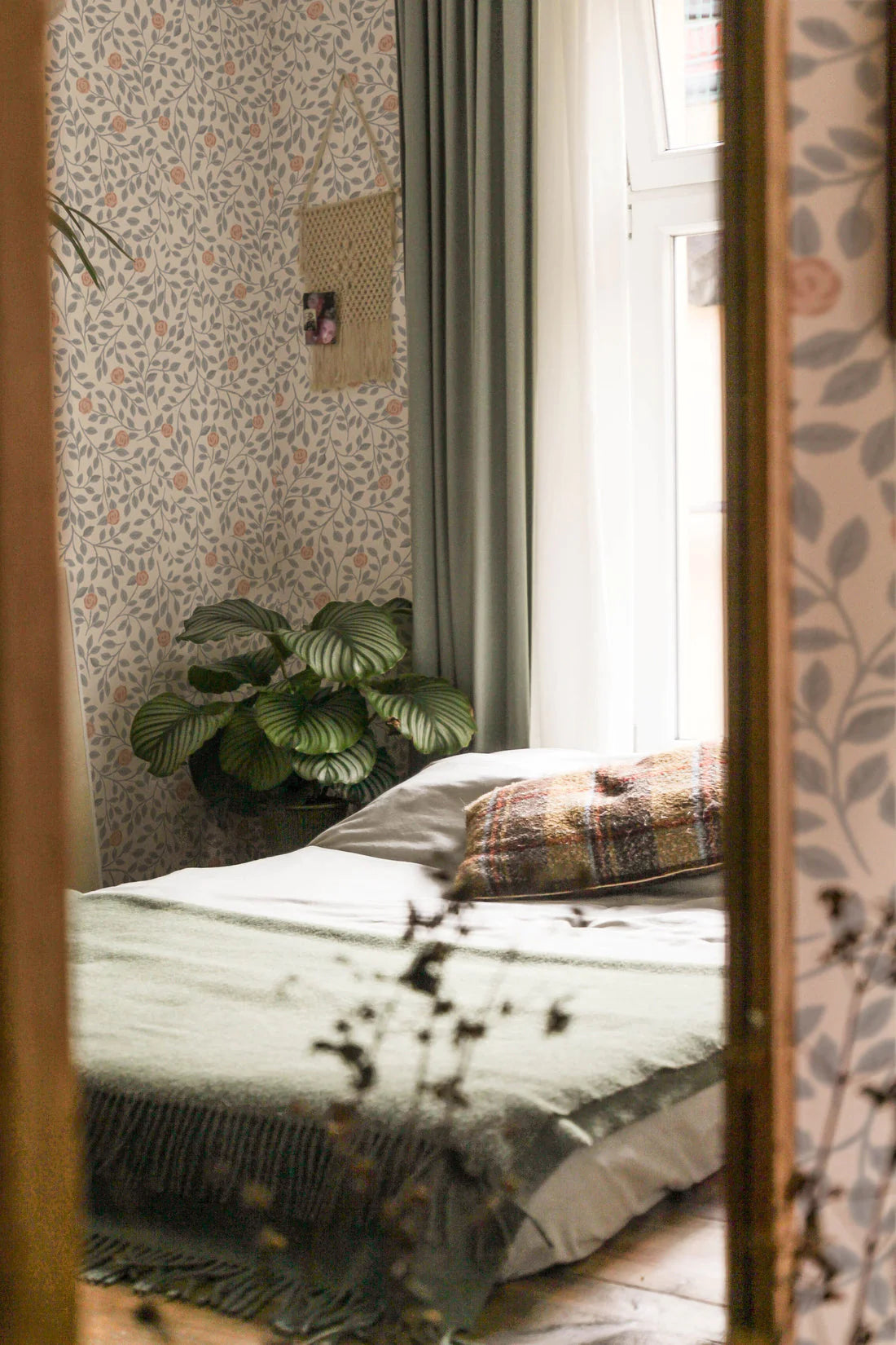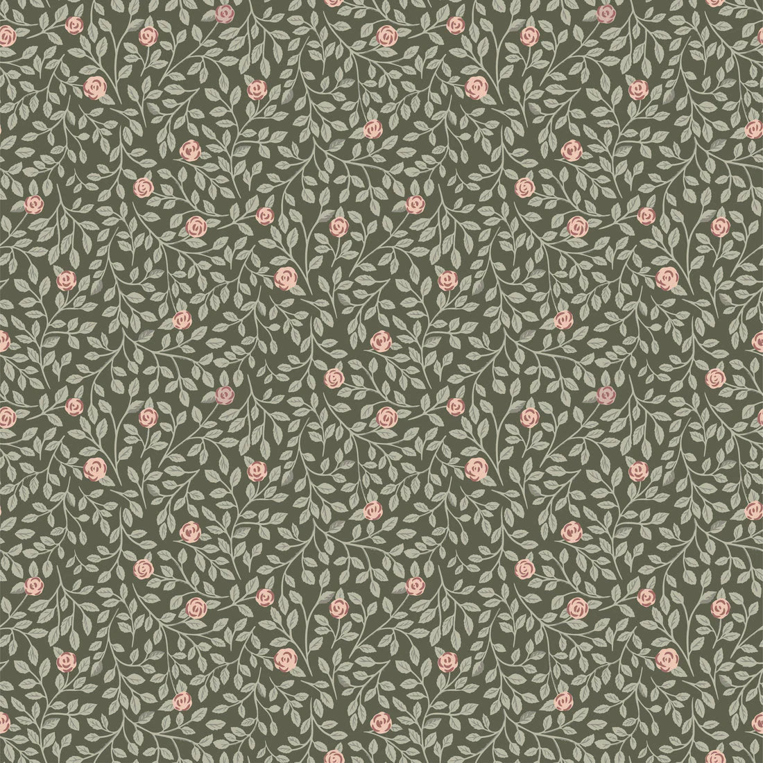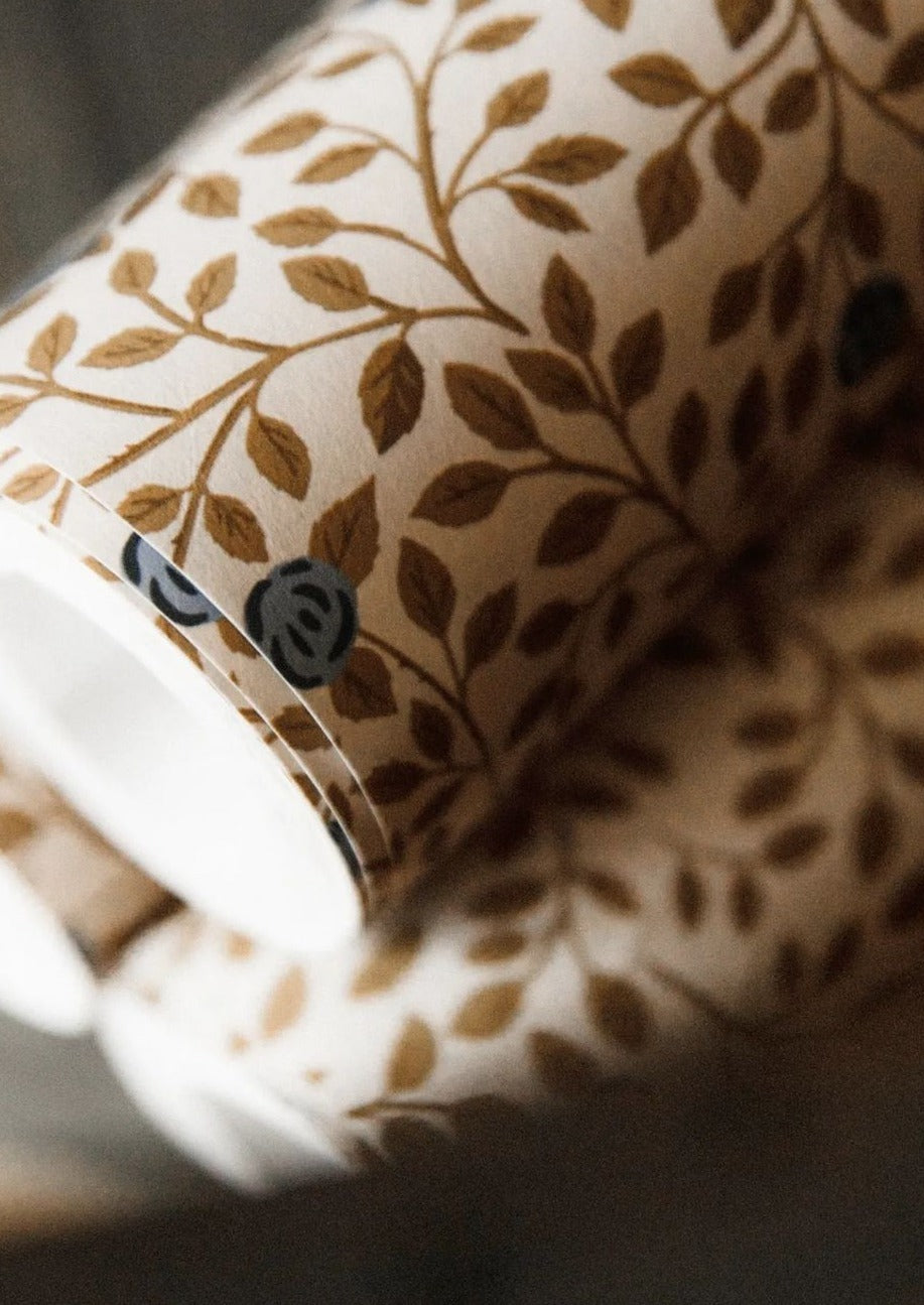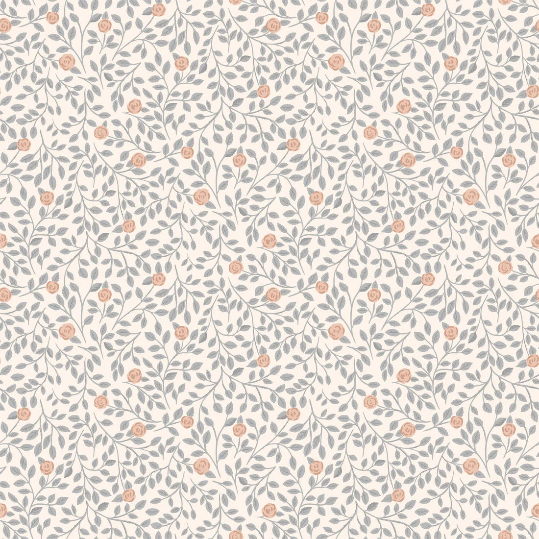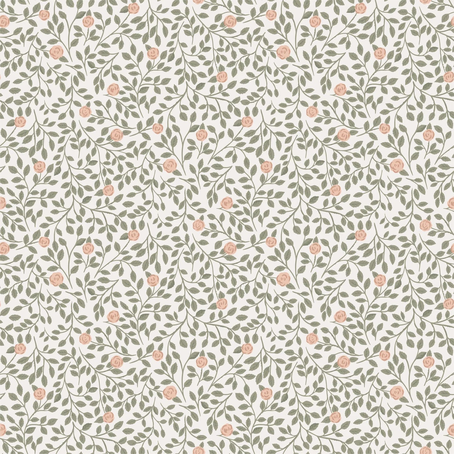 Geïnspireerd op sprookjesachtige muren die door rozen worden overwoekerd, omhult dit verfijnde klimrozenmotief je interieur met een zachte, betoverende charme - perfect als rustgevende achtergrond voor je kleintje.