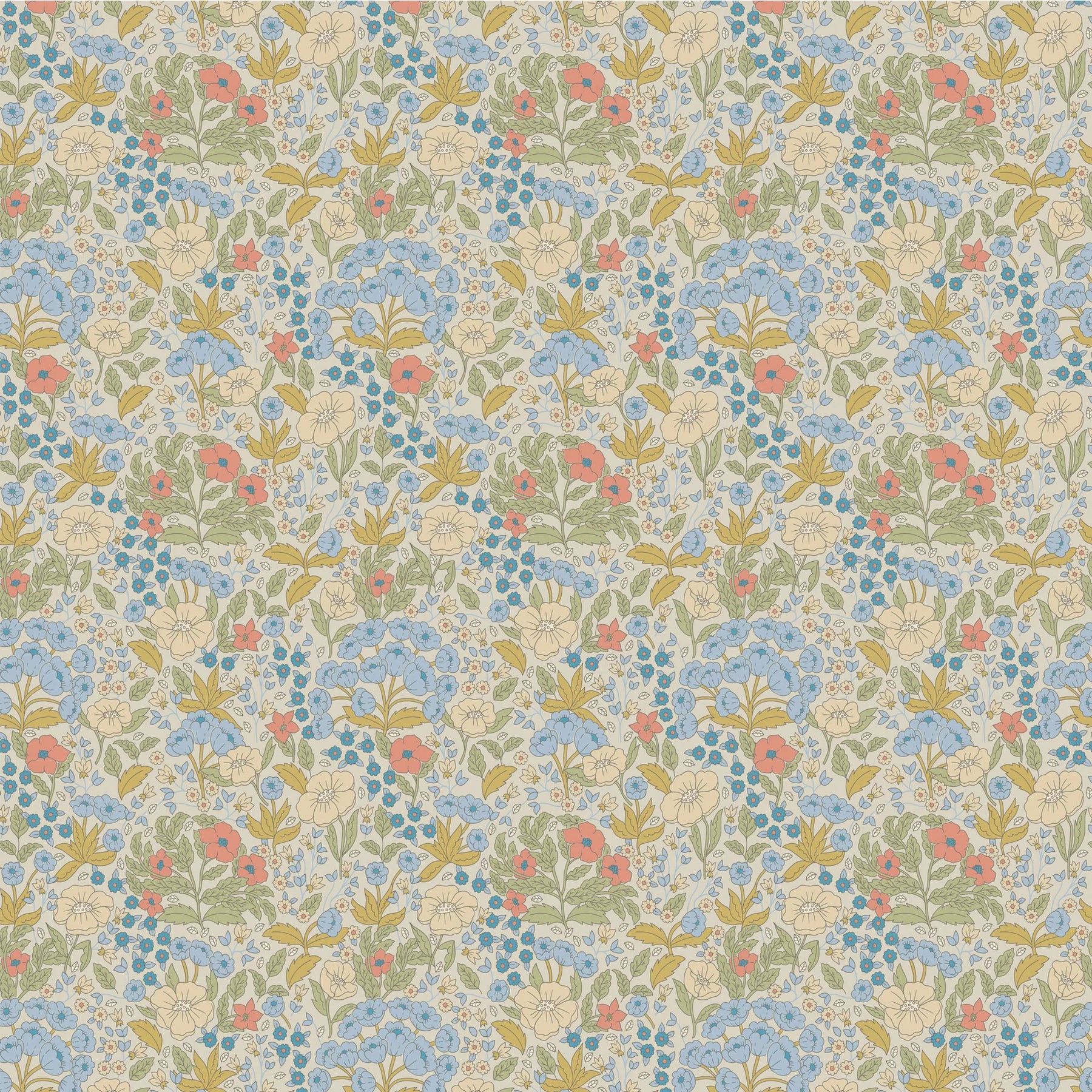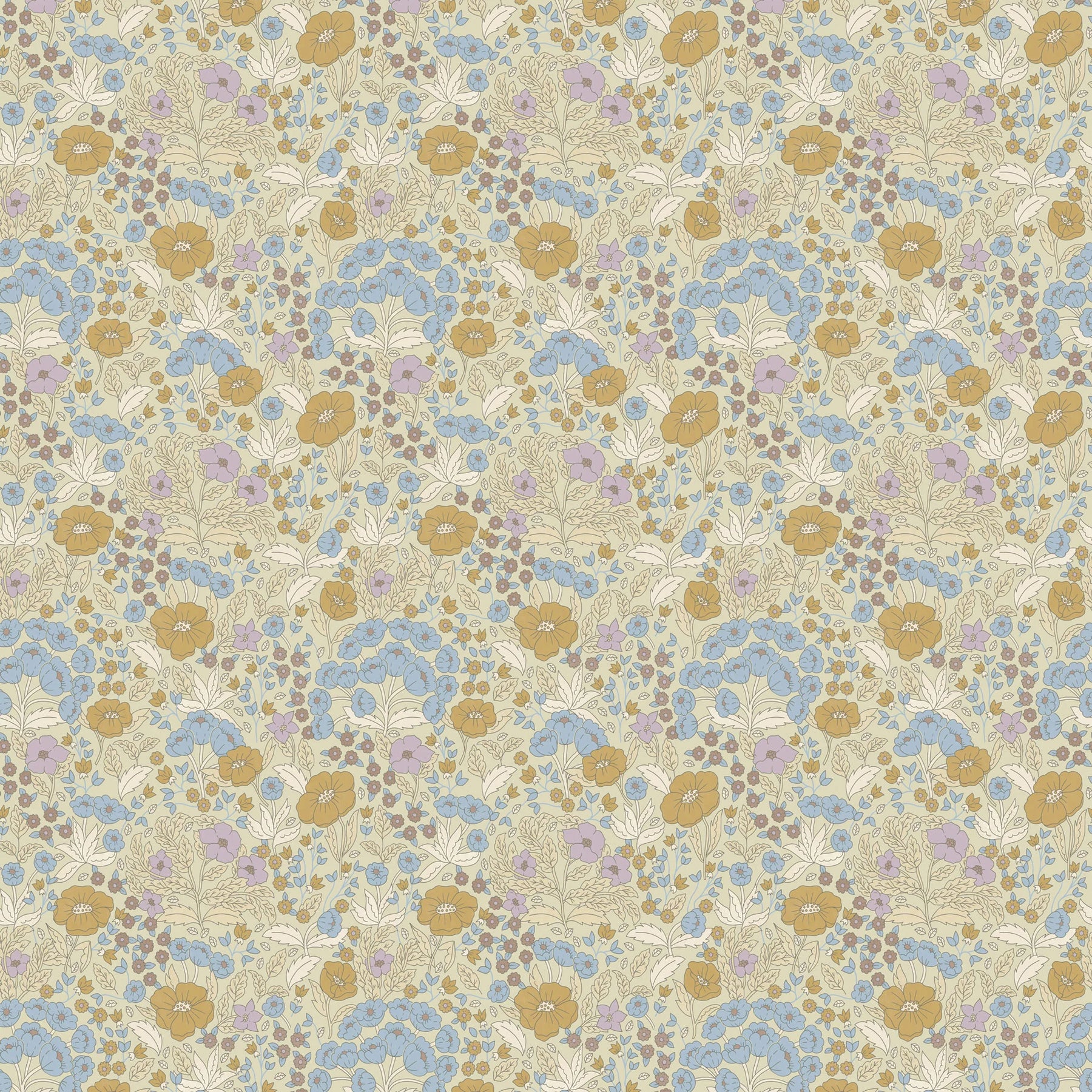 Die handgezeichnete Blumenwiese der niederländischen Designerin Lily Odette verströmt natürliche Verspieltheit und feine, nuancierte Details - ideal als Tapete fürs Kinderzimmer oder als charmante Kulisse in einer gemütlichen Landhausküche.