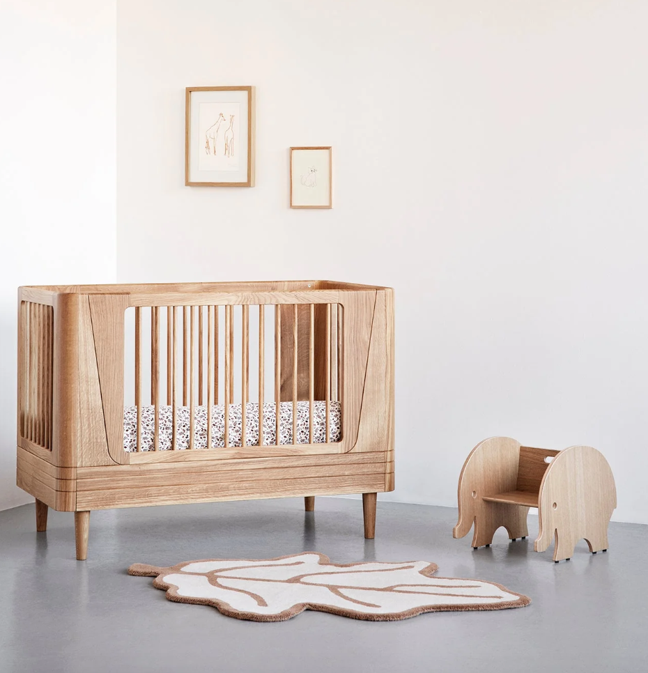 Aus massivem dänischem Eichenholz gefertigt, verwandelt sich dieses hochwertige Wandelbett vom ruhigen Neugeborenenbett zum Juniorbett (mit optionalem Umrüstkit). Warmes Naturholz, sichere Verarbeitung und zeitloser nordischer Stil machen es zur perfekten Wahl für moderne Kinderzimmer.