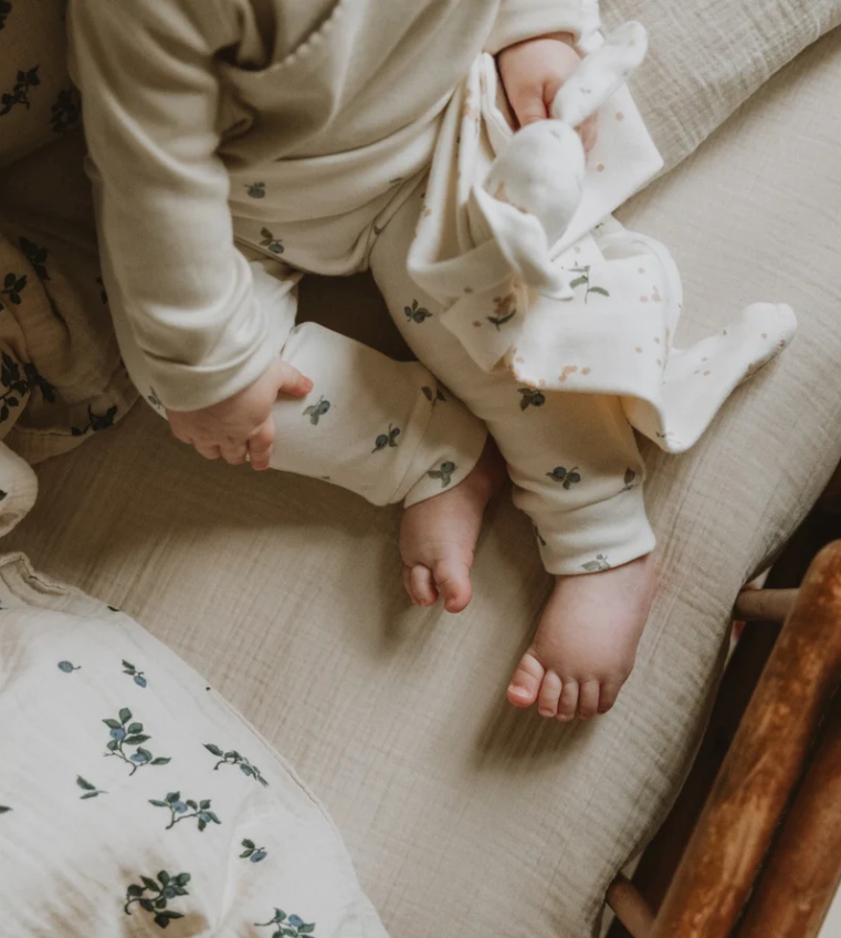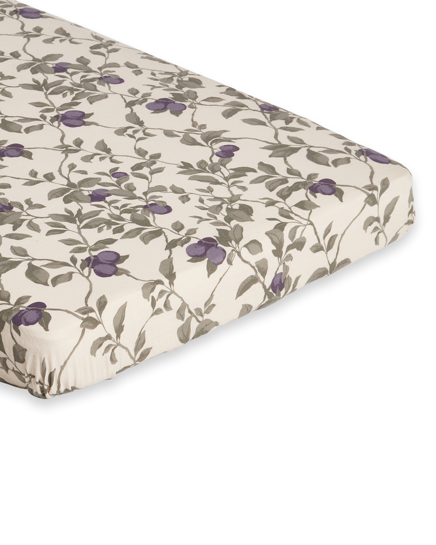 Оберните матрас кроватки вашего малыша нежным, как масло, дышащим муслиновым хлопком, который надежно облегает при каждом движении. Эта изысканная простыня сочетает легкий комфорт с эластичным краем по всему периметру и принтами, вдохновленными природой - этично сшита в Португалии и мягка для нежной кожи.