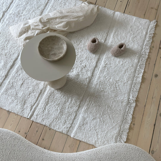 Ковёр We Are Bitte North сочетает вневременной стиль, лёгкий уход с машинной стиркой при 30°C и практичность для оживлённых семейных пространств. Стираемый ковёр из 100% хлопка для современных домов. Размер 140 x 220 см.