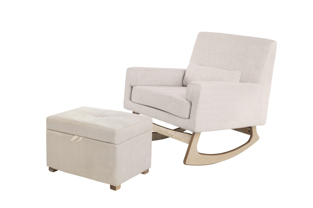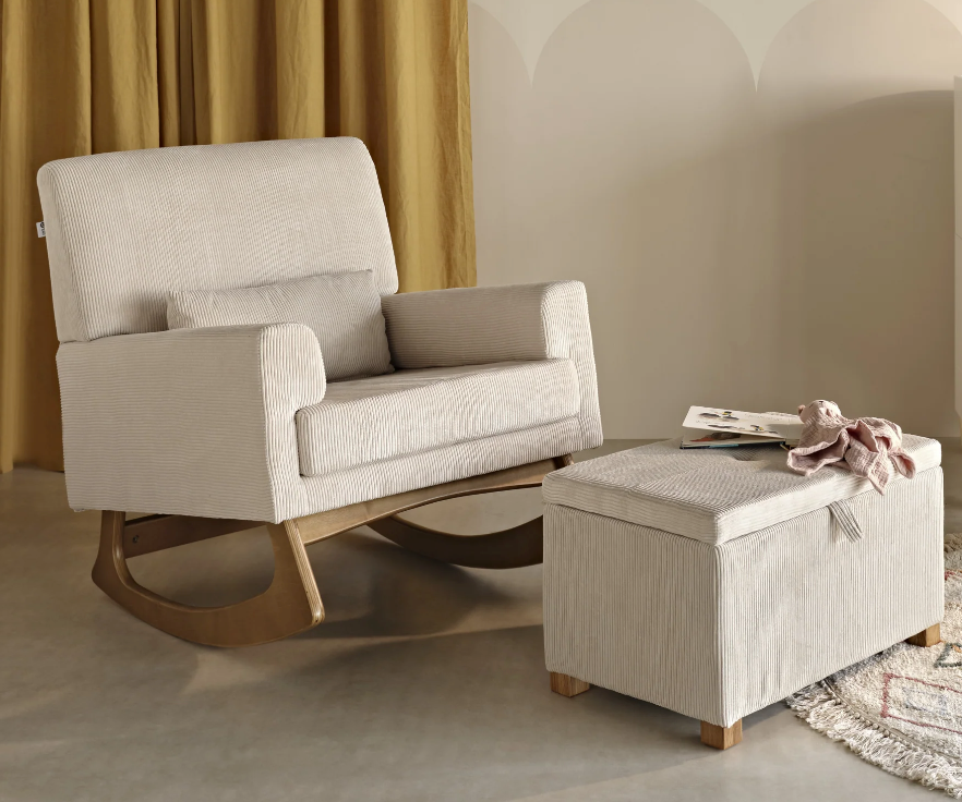 Погрузитесь в нежный комфорт с этим мягким креслом-качалкой для детской в кордурое, которое сочетает стильную текстуру с эргономичной поддержкой для спокойных кормлений и теплых ночных объятий.