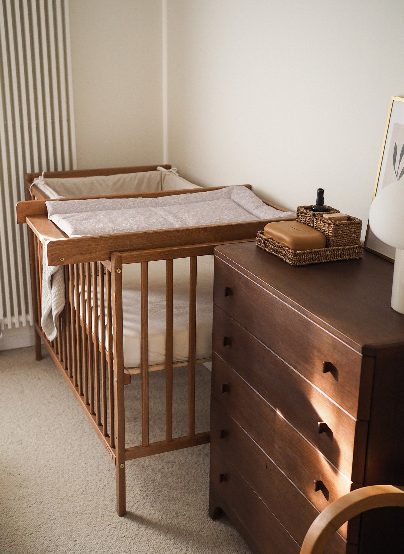 Опциональное дополнение: Пеленальный столик Vintage Cot Top Changer с пеленальным матом, чтобы сэкономить место на полу.