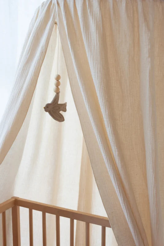 Создайте спокойную, мечтательную детскую комнату с этим мягким хлопковым муслиновым балдахином от Nanami - воздушным, натуральным акцентом, который грациозно ниспадает над кроваткой или колыбелью и превращает обычный сон в нечто особенное.