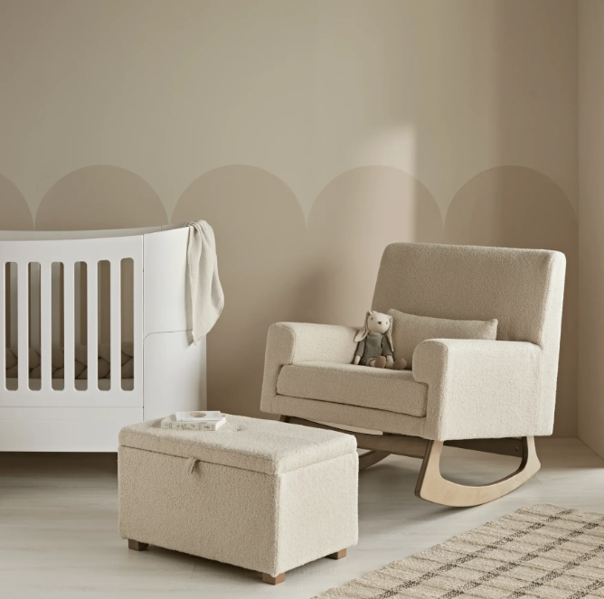 - Идеально дополняет кресло-качалку и для кормления Serena Bouclé, а также служит стильной скамеечкой для хранения для дома.