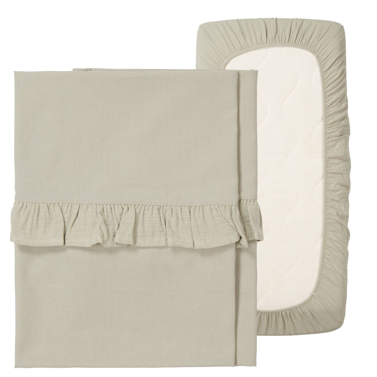 Koeka Flat Sheet And Fitted Sheet Set - Ruffle Faro Crib / Sage - Hola BB