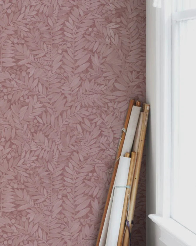 Bol yaprak katmanları ve narin meyveler, duvarlarınıza büyüleyici bir bahçe havası katar-Eve, İsveçli tasarımcı Cecilia Pettersson imzalı yapraklı bir duvar kağıdıdır ve her odaya doğal bir canlılık getirir.